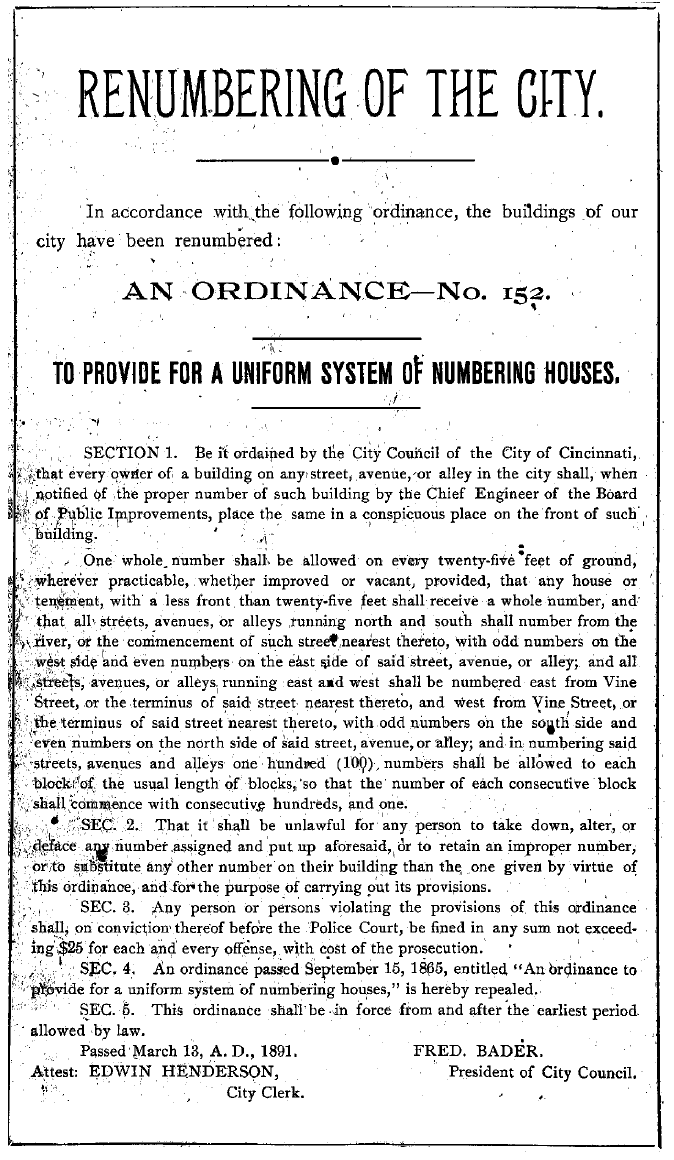 From 1890 to 1895 the family address, including Charles George Foertmeyer MD, is listed as 519 Chase. It is listed that way for each of those years, so I assume it is accurate, but in 1896 their address changes to 1555 Chase Avenue. Since Chase Avenue ends at Spring Grove Cemetery in the number 1210, and Spring Grove Cemetery was there in 1896, and I can find no other Chase Avenue, past or present, I may conclude that for some reason there was a street number change in 1896. This remains open for further study.