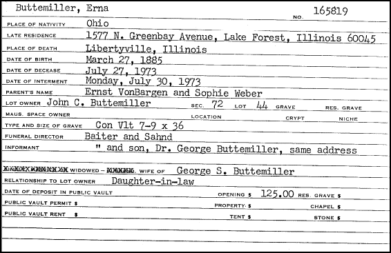 Her last address listed above on her internment card is in an exclusive neighborhood and is listed as a $1,400,000 property. I could not obtain any image of it.